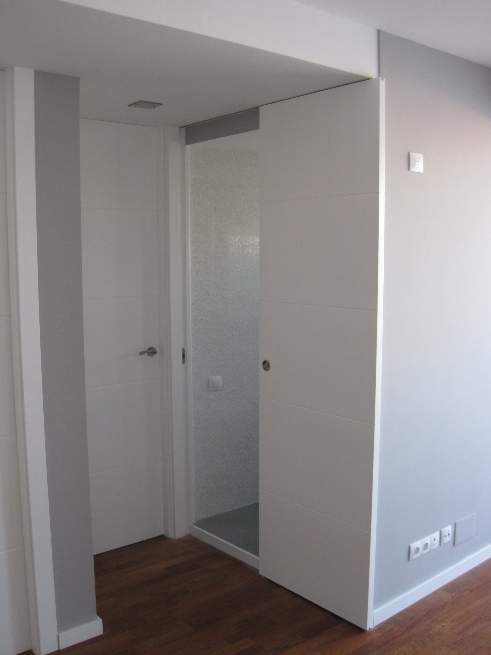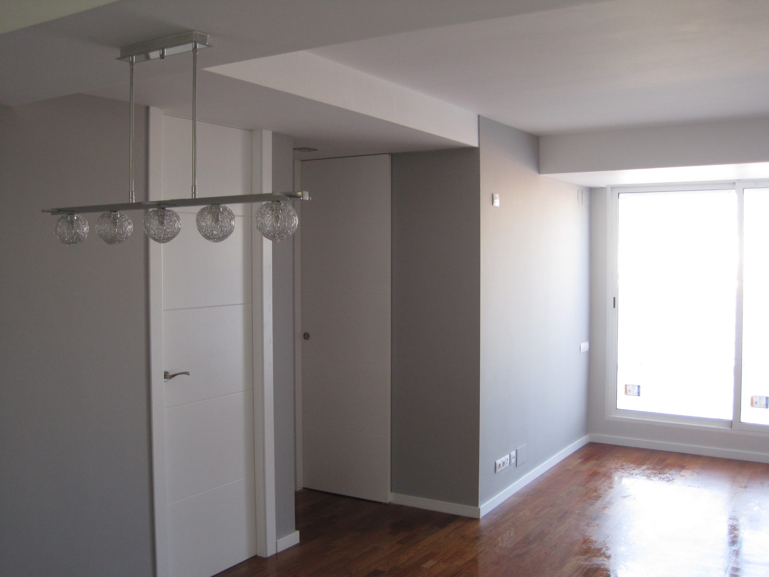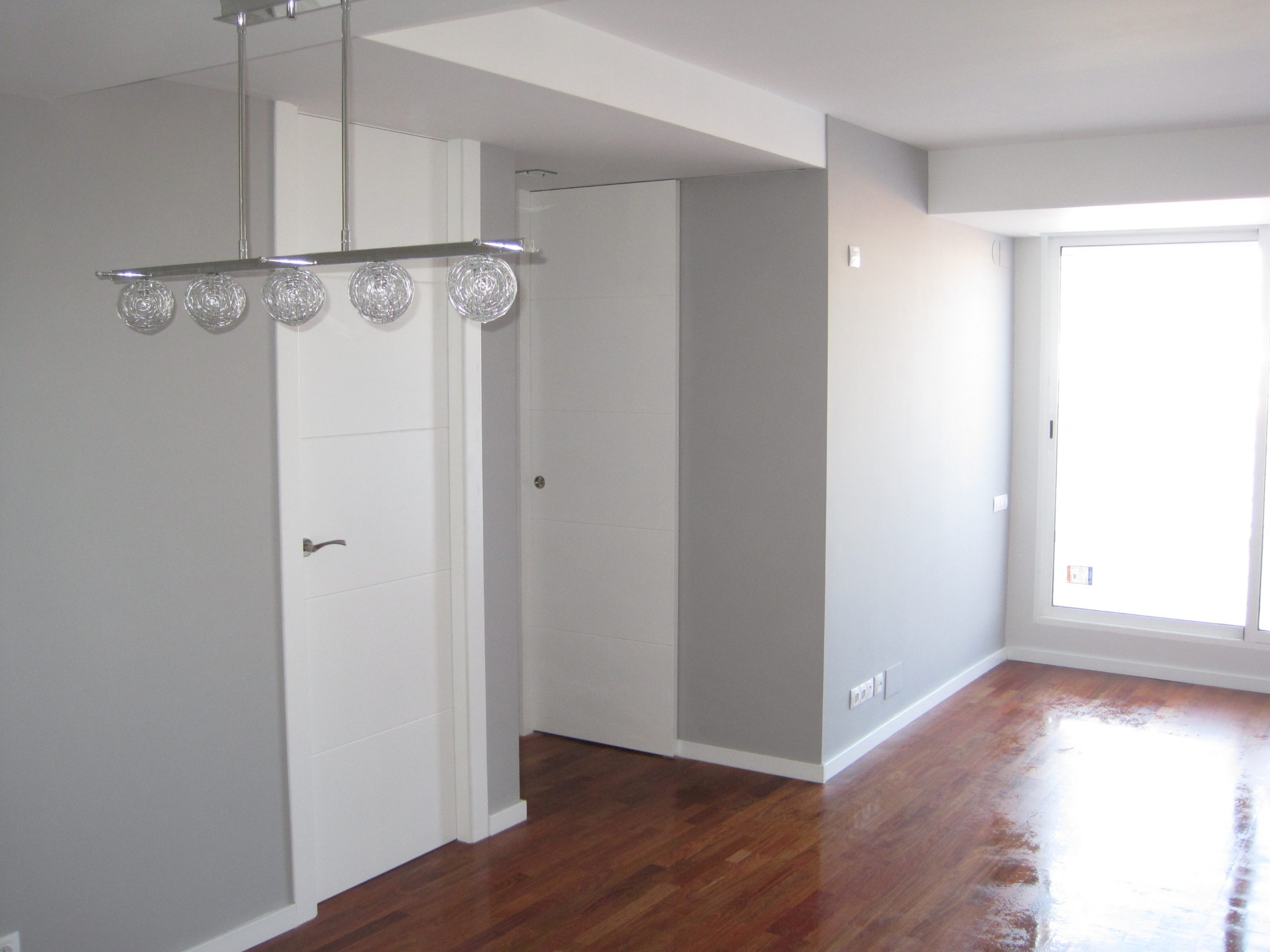 La carpintería exterior de aluminio se realizó nueva, ventanas correderas con vidrio climalit. En cuanto a la carpintería interior se utilizaron tableros de madera procedentes de bosques gestionados de manera sostenibles y lacados con pinturas naturales, diseñamos puertas cuya hoja llegaba hasta el techo eliminando la parte superior del marco.