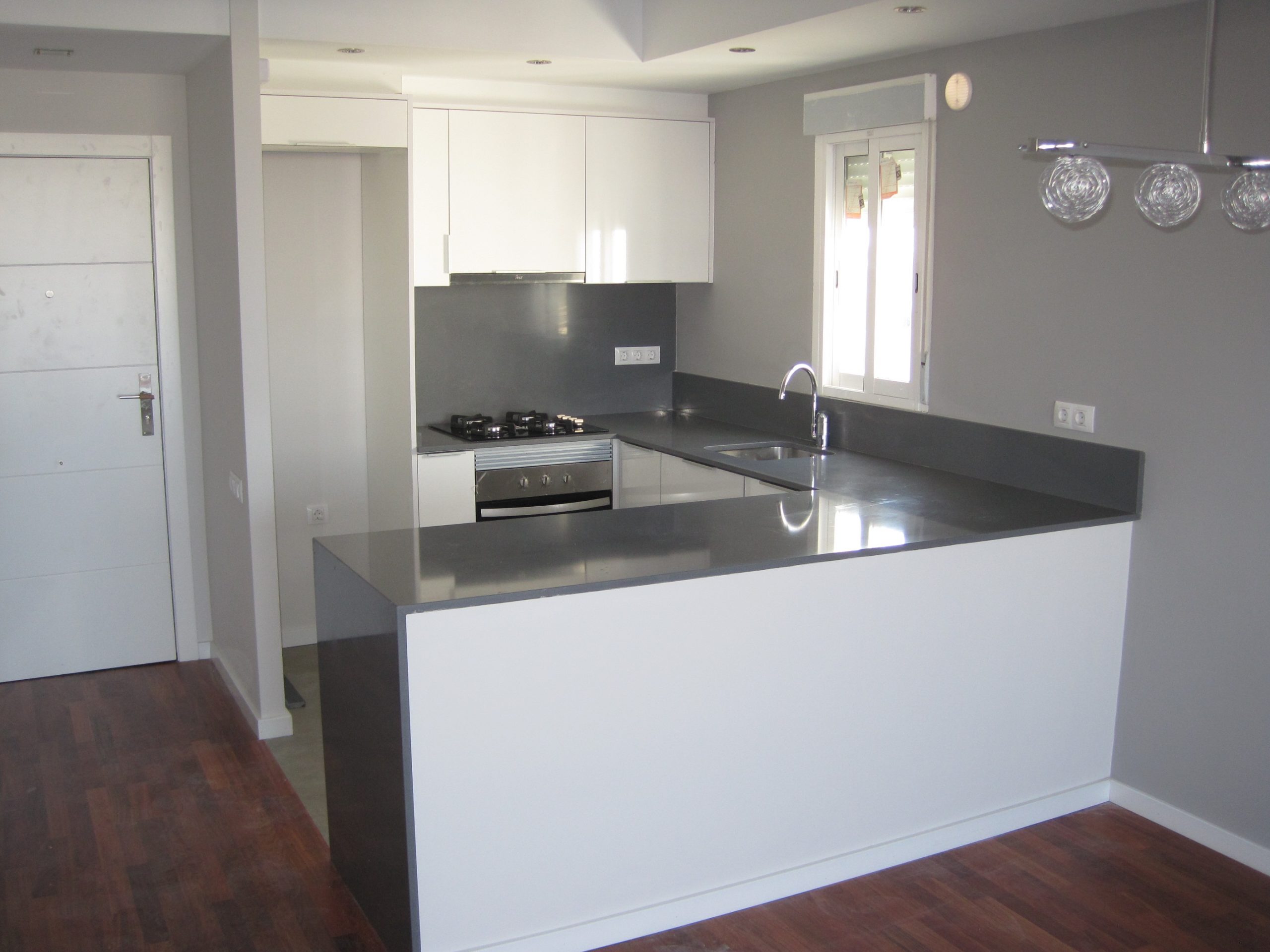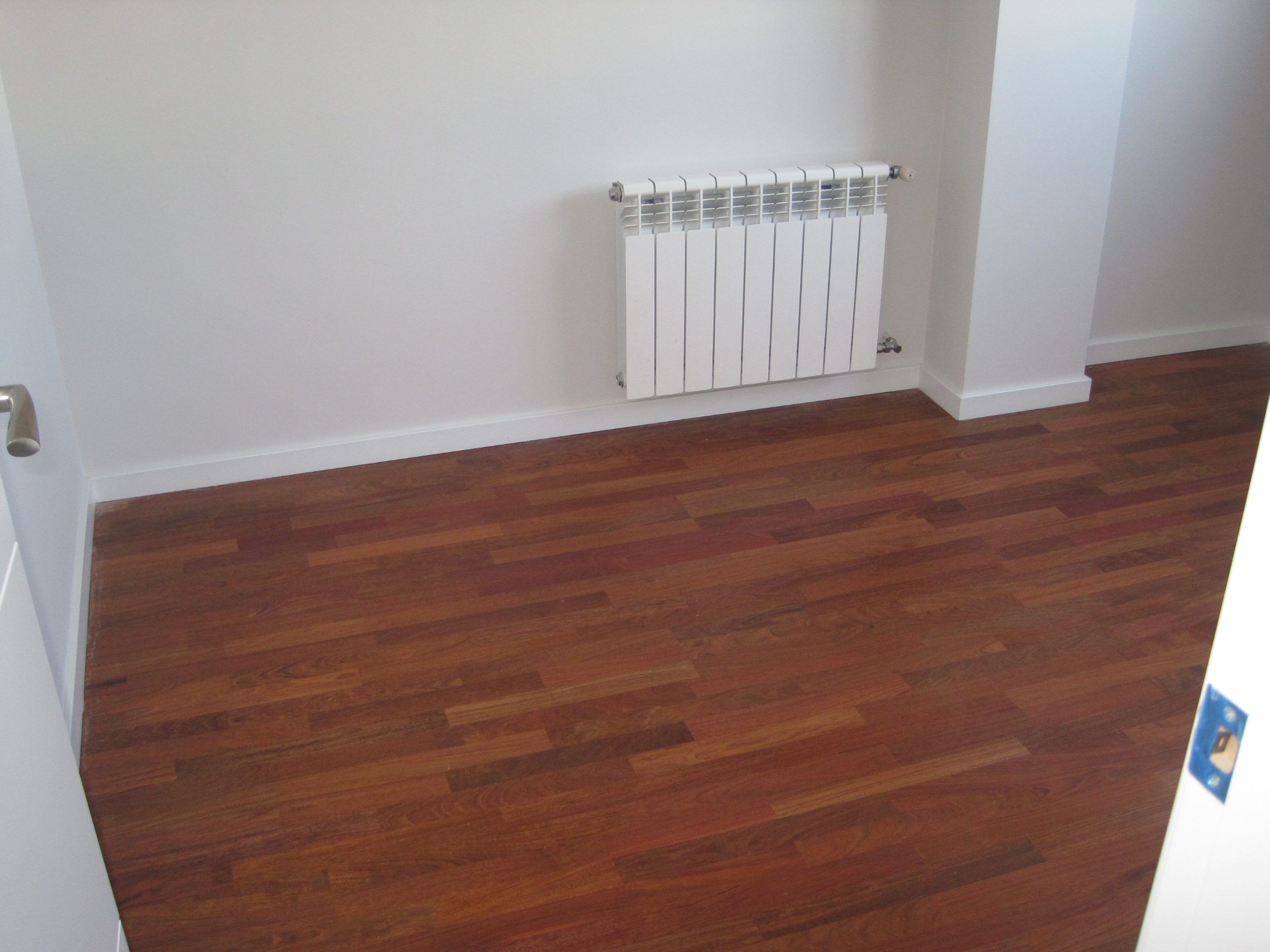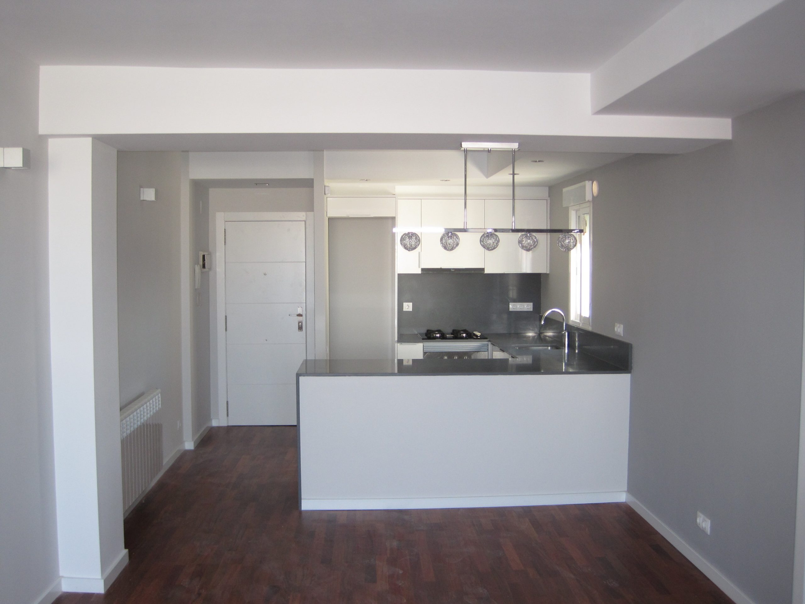 La carpintería exterior de aluminio se realizó nueva, ventanas correderas con vidrio climalit. En cuanto a la carpintería interior se utilizaron tableros de madera procedentes de bosques gestionados de manera sostenibles y lacados con pinturas naturales, diseñamos puertas cuya hoja llegaba hasta el techo eliminando la parte superior del marco.
